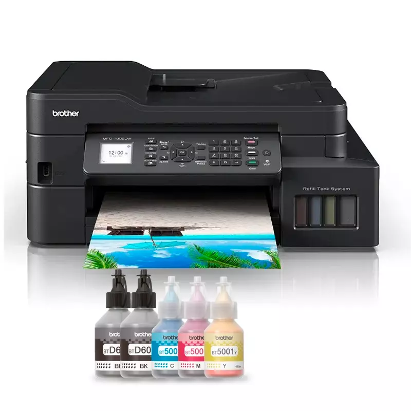 Impresora multifuncional de inyección de tinta a color MFC-T920DW InkBenefit Tank con conectividad inalámbrica te ofrece impresión económica y de alta calidad para
