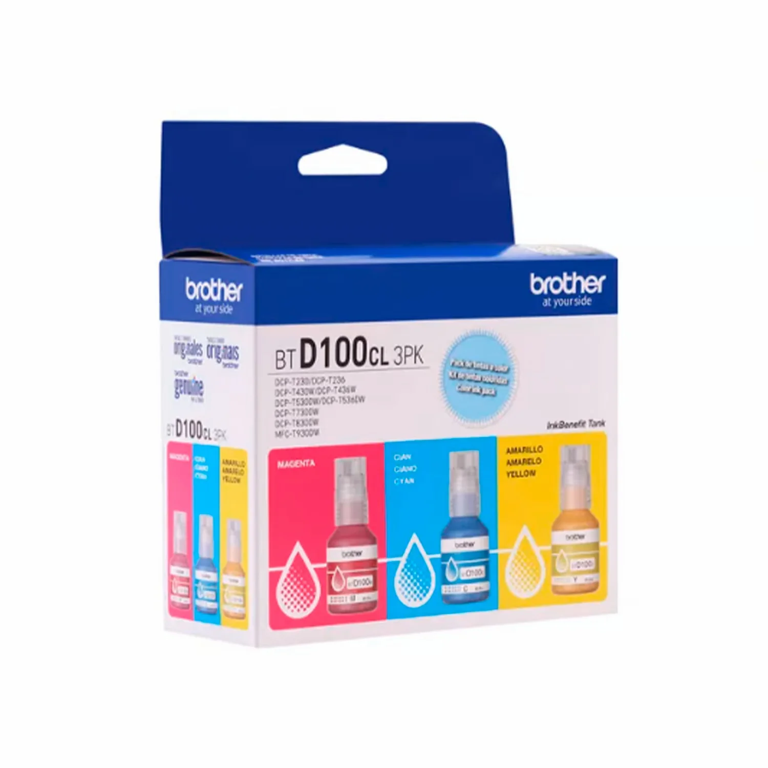 Tinta Brother BTD100CL3PK, Asegure más economía y practicidad con el paquete de recargas de tinta de color (C/M/Y) de alto rendimiento de Brother para la línea InkBenefit Tank. Imprima hasta 5.000 páginas con calidad excepcional, textos nítidos y colores vibrantes. Con la nueva tecnología antiderrame, recargue el tanque en segundos, sin ensuciar y con total eficiencia. ¡Más rendimiento, más calidad, menos interrupciones